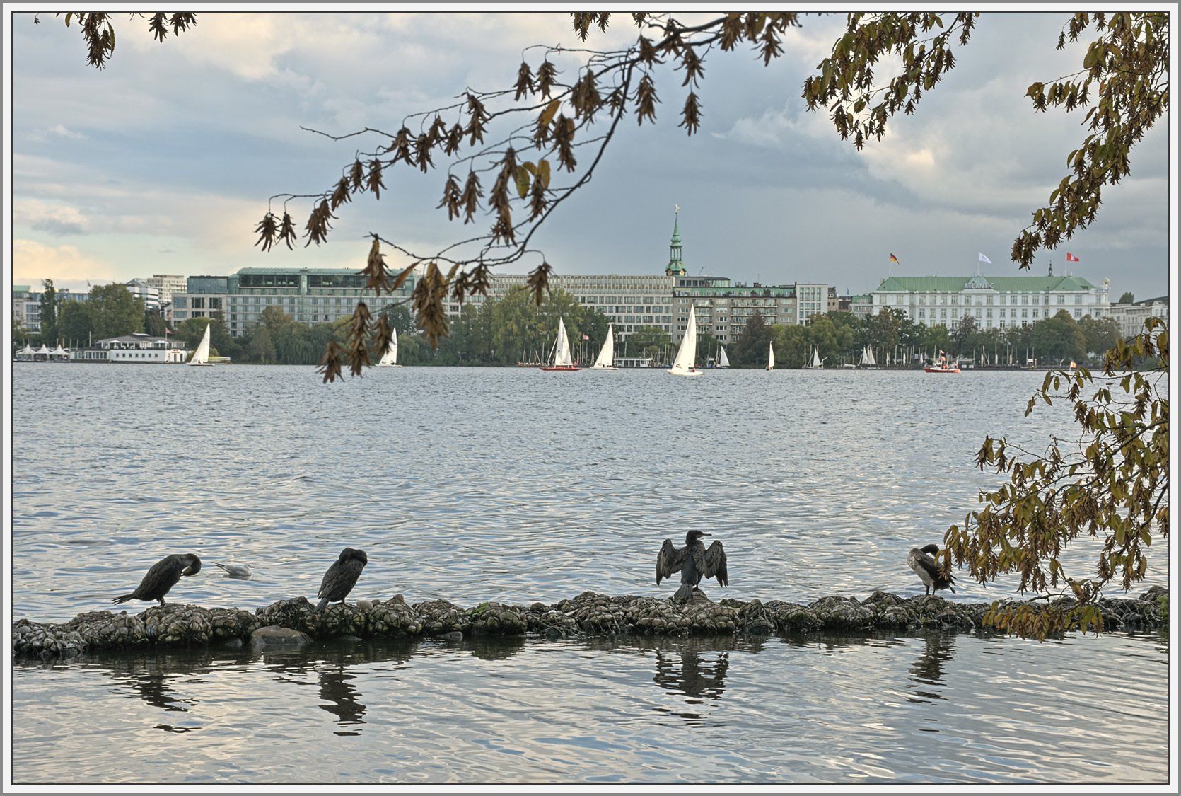 Die intensiv von Wassersportlern genutzte Außen- und Binnenalster im Herzen Hamburgs mit ihrem Grüngürtel drum herum und die durchgehend weiten Ausblicke, die sich von den Ufern bieten, tragen zweifellos zur Attraktivität dieser Stadt bei. Auch entlang der zahlreichen, in die Alster mündenden Kanäle findet sich manch beschauliches Idyll, welche einen wohltuenden Kontrapunkt zum ansonsten eher hektischen städtischen Treiben setzen. Vielerorts bieten sich reizvolle und im Herbst auch besonders farbenfrohe Motive.